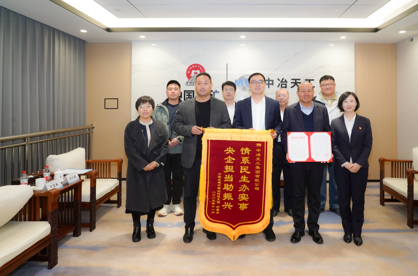 近日,天津市寶坻區方家莊鎮中郝莊村黨支部、村委會相關負責同志到訪中冶天工,代表方家莊鎮黨委、政府向公司送來感謝信和錦旗,衷心感謝公司黨委對方家莊鎮給予的大力支持以及為鄉村振興作出的積極貢獻。
